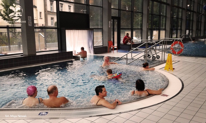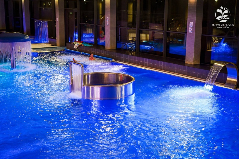 Das Baden in natürlichen Thermen steht bei den Touristen langfristig ganz oben auf der Wunschliste. Solch ein Erlebnisbad entstand nun unlängst auch im bekannten Heilbad Cieplice Slaskie Zdroj (heute eine Ortslage von Jelenia Góra/Hischberg) auf der polnischen Seite des Riesengebirges. Von Harrachov ist es gerademal 30 Kilometer entfernt. Die dortigen Schwimmbecken werden mit Thermalwasser (im Bereich von 27 -36 °C) gespeist, das aus ca. 1800 m Tiefe aus der Erde gepumpt wird. Es geht hierbei um eine schwach mineralisierte, fluorid- und siliziumhaltige Therme. Außer mehreren Schwimm- und Planschbecken im Innen- und Außenbereich gibt es hier auch eine Riesenrutsche, einen Wildwasserstrom sowie eine Wasserschaukel. Teil des Komplexes ist ein SPA-Therapie Bereich mit Sauna, Eisgrotte und Massagen sowie ein Restaurant & Café.